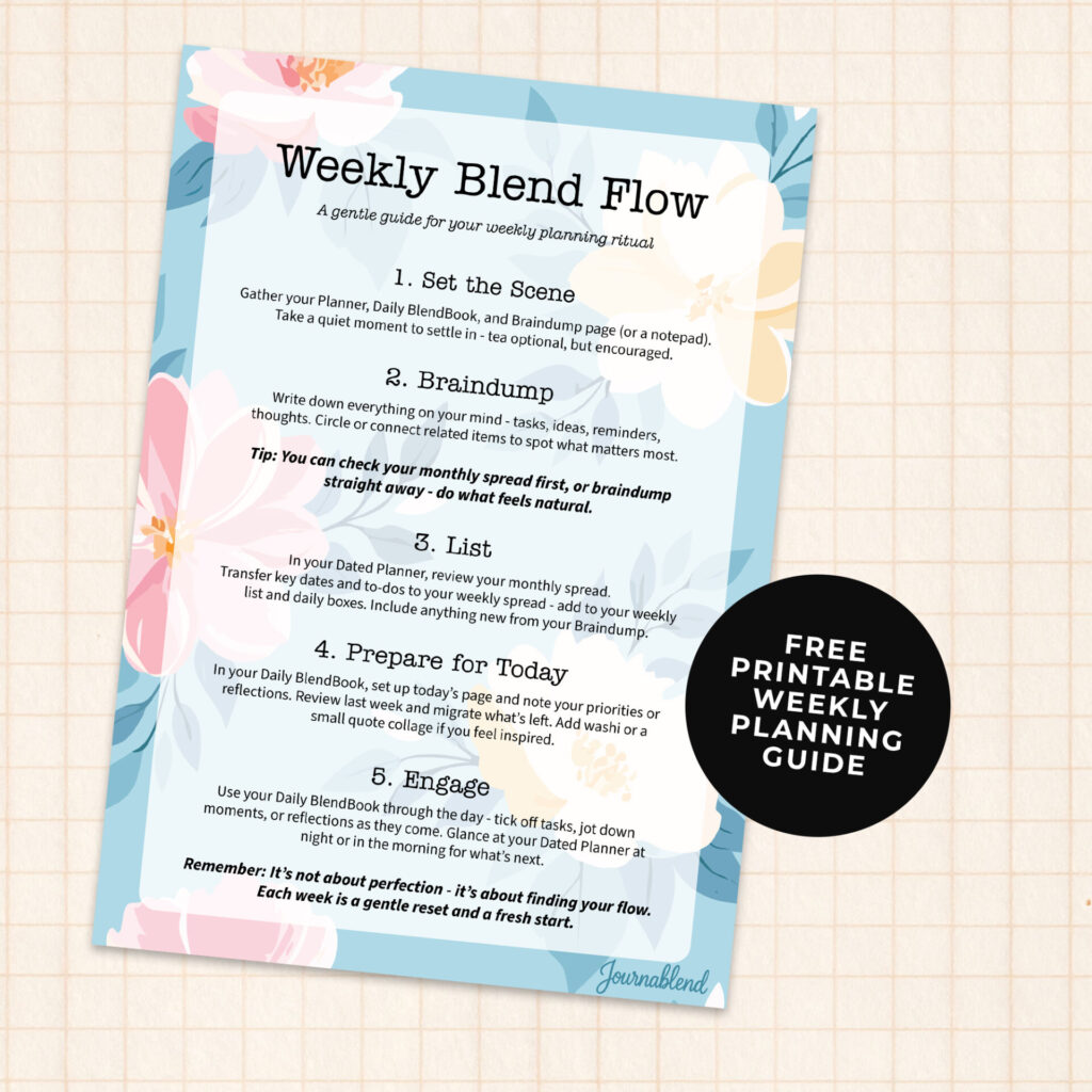 If you’d like to keep a simple reminder of this process handy, you can download the Weekly Blend Flow printable guide in the Planner Lovers Resource Library or on Patreon.