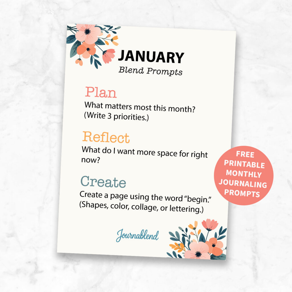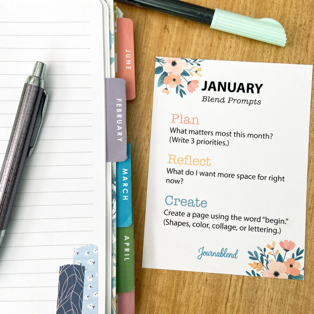 This year, I’m introducing a Monthly Blend Prompt Card – a compact card with three simple prompts to guide your planning, reflection, and creativity within Journablend and The Blend Flow.